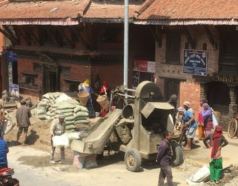 Whilst having coffee on one side of the square we watched fascinated as a team of people mixed concrete with an old motor mixer carrying amazing loads of sand and stone around on bags strapped across their foreheads.