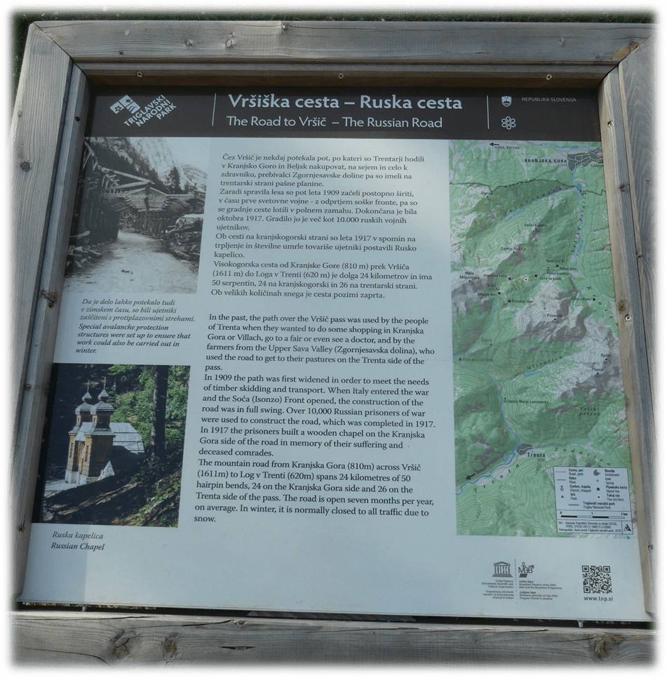 The road over the pass had been built by Russian prisoners in the early twentieth century as a logging road for the people of the Trenta valley.
