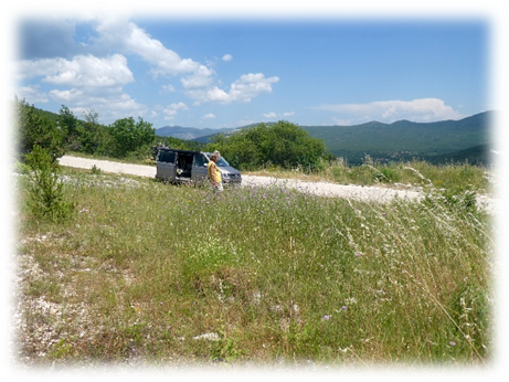 Continuing on we stopped for lunch high up in the hills at Gizvodac on the roadside where we watched lots of butterflies and other colourful insects flying amongst the sparse grass.