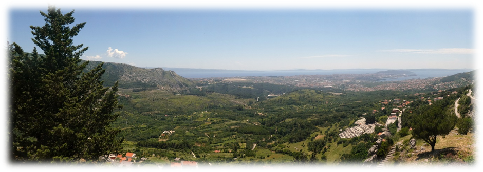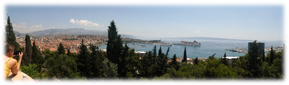 We left the palace area and walked through the Veli Varos medieval part of the city to the high point at Park Suma Marjan. Here we had extensive views along the coast and over the busy harbour below us.