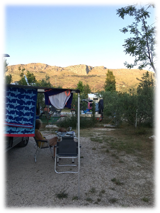 We were greeted warmly and picked a shady pitch with two olive trees.