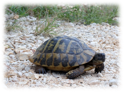 Later, on the track Graham met a tortoise slowly crossing into the scrub of the olive groves.