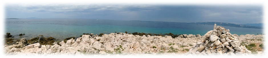 Towards the northern end of the island beyond Lun the road ended so, we abandoned our bikes and walked over the deeply fissured white limestone rocks reminiscent of North Clare.