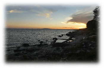 Finding somewhere to swim with not too many jagged rocks was challenging but eventually we did enjoy the cold clear water and saw the mountainous mainland to the east and other islands to the north and west.