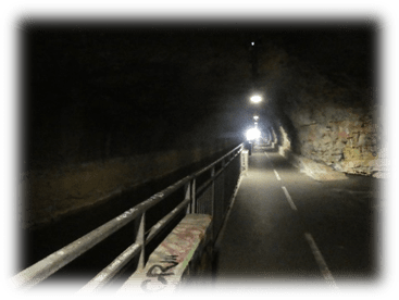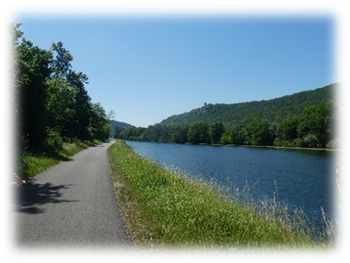 It was a very hot day in and there was not much shade. By the time we came in sight of the town fortifications high above we were ready to stop and were thankful for the tunnel which cut off the loop in the river and took us under the castle and into the town.