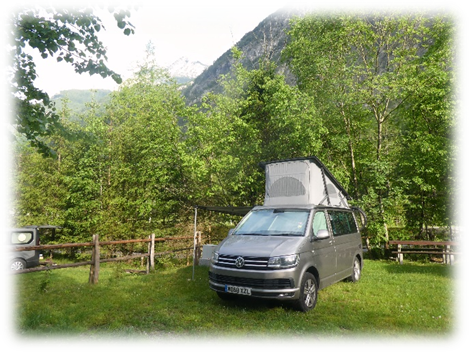 Surrounded by mountains, and with our awning coping well with the showers of rain, we felt rather smug that we had at last arrived somewhere.