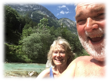 Still aching at the joints from yesterday’s exertions, we cycled up to the shop in Trenta for provisions including some delicious looking fruit tart slices. Back at the camp site we were met by an English-speaking couple who saw our registration number offered us their unused food from their holiday flat which added to the stores!