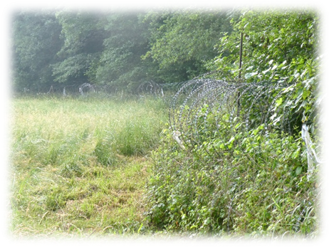 Walking around the site in the early morning it was disturbing to find that the actual border had bright shiny razor wire along it so you wouldn’t try to get over it. This was a response to European in migration from the east.