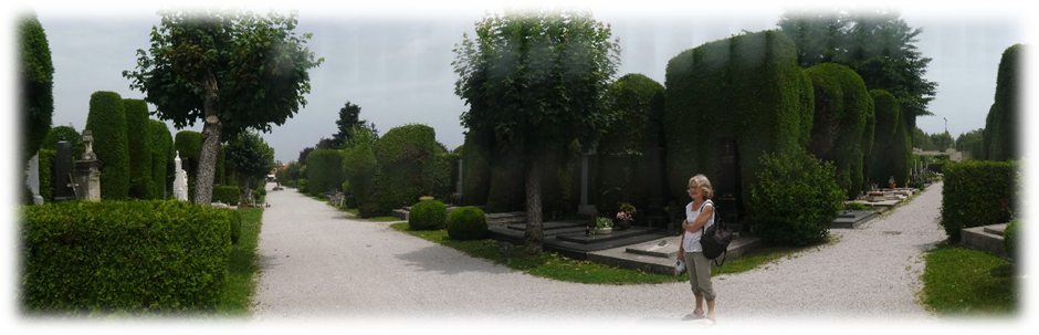 We walked to the cemetery on the edge of the town centre where the trees have all been topiarised to fit around the graves, allowing more light, it wasn’t very appealing.