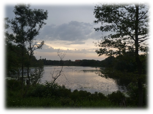 It was a lovely evening with the light was fading on the water of the river, pools and lakes, and storks and herons were along the river in abundance. At one point a pine martin shuffled across the road.