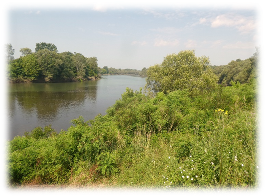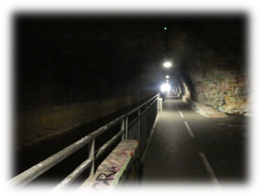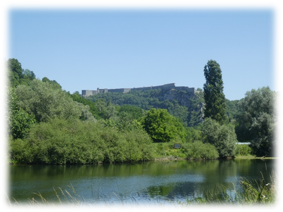 It was a very hot day in and there was not much shade. By the time we came in sight of the town fortifications high above we were ready to stop and were thankful for the tunnel which cut off the loop in the river and took us under the castle and into the town.