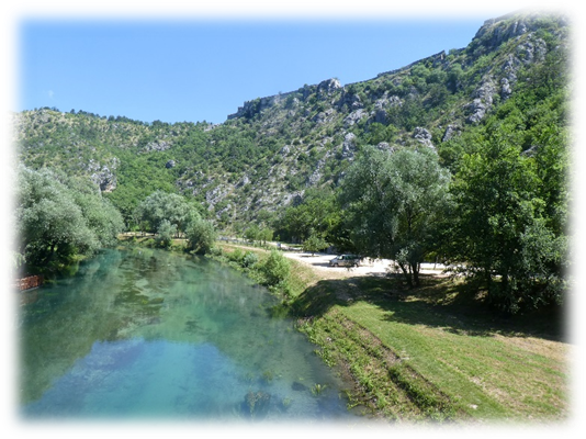 The terrain became more wooded and undulating as we turned south and stopped for lunch beside the Korana river before Slunj. From here it was a short distance to Camp Bear where we secured a nice plot overlooking the road and wooded hills.