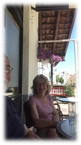 We strolled around and spent a happy half hour in a cloths shop whilst Janet bought herself some cool cotton clothes before we had a drink on a hot square.