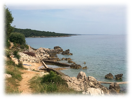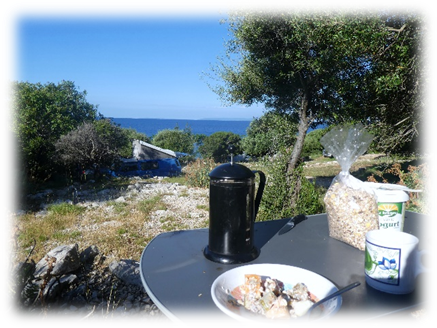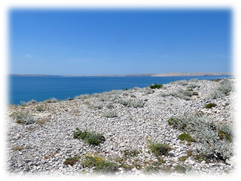 We bought some food in the town of Pag and then travelled on to the western more vegetated side of the island and north to the Autokamp Skovrdara.