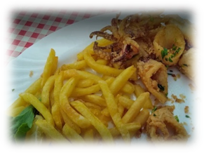 Here in the Pension Ivo amongst locals we had a relaxed meal of Pag cheese, tomatoes and olives followed by plates of grilled calamari, chips and salad and some white wine.