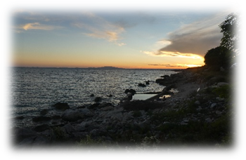 Just as the sun set on the longest day of the year, we swam again with the setting sun reflecting on the water.