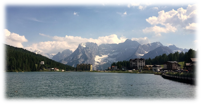 We walked the short distance into the small town of Misurina, a delightful Tyrolean mountain resort with charming 19th century hotels overlooking a picturesque lake.