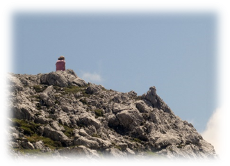 We saw a black squirrel amongst the pine woodland as we descended and stopped at some interpretation boards half way down to view the Prisojnik massive.