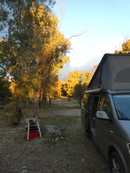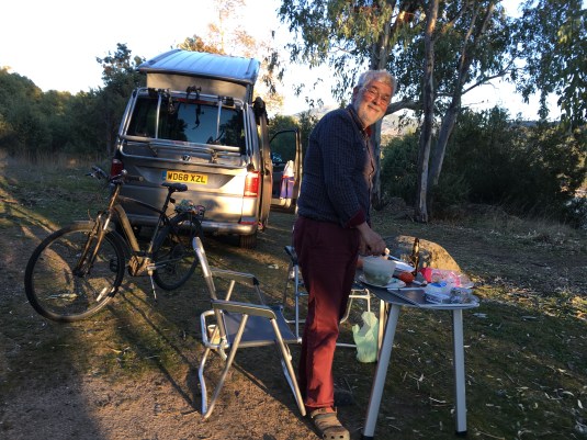 There was frost on the ground but warmer when the sun came up, we scraped the frost off the table and managed breakfast outside.