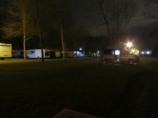 We spent the late afternoon on the campsite reading and listening to the radio. As it got dark, we sorted out the van ready for an early start in the morning.