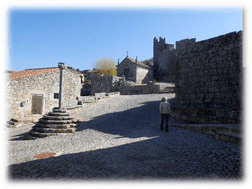 Nobody else was camping so it was like having your own multiple bathroom. There had been a night watchman guarding the site all night, so we felt very well looked after. We washed a load of clothes and hung them on one of many rotary clothes airers that were provided. After breakfast we walked into town and bought some bread before driving to an interesting old walled town, Marialva, within the Meda Parish.