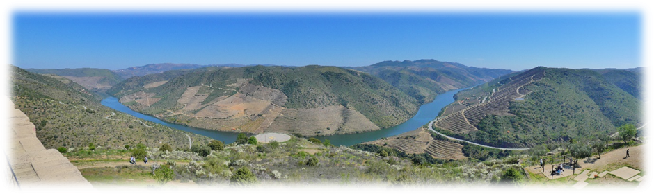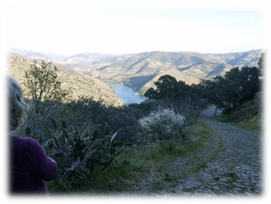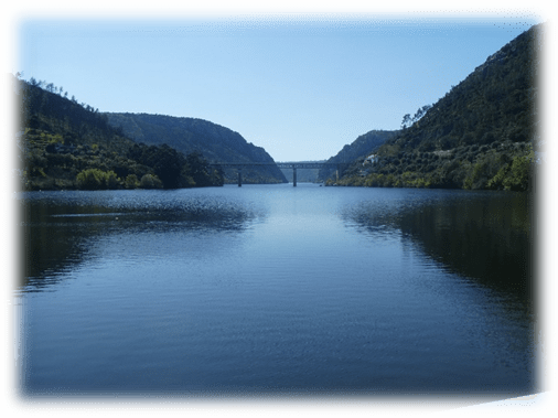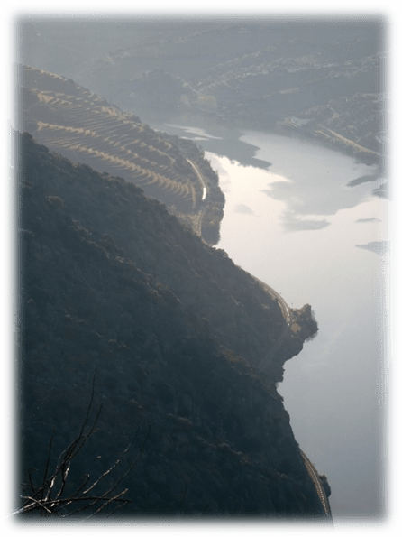 In Pinhao a cruise boat was disgorging its passengers on the quayside, so we moved on quickly cycling on down the river towards Porto stopping before the auto route bridge that crossed the river near Peso la Regula.