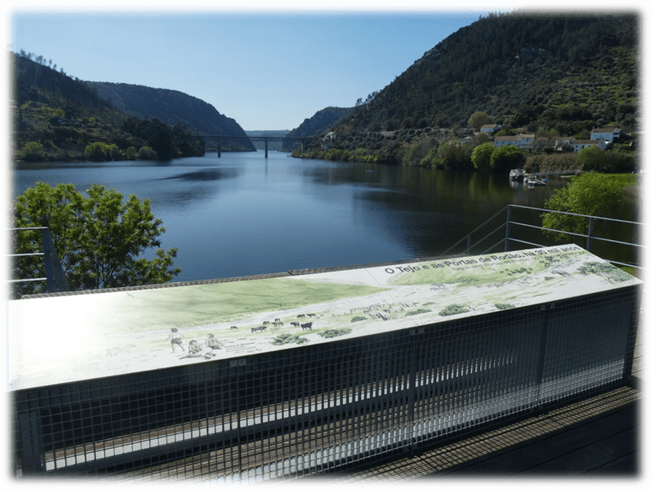 As we approached the town of Vila Velha de Rodao the sight of two power stations belching out smoke as we approached wasn’t promising. Even after we passed through the town to the river there was an odour in the air but once down by the river it was delightful with boats moored, picnic benches and even a vulture flying overhead!