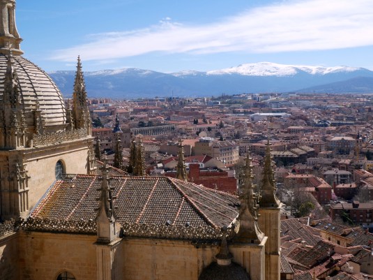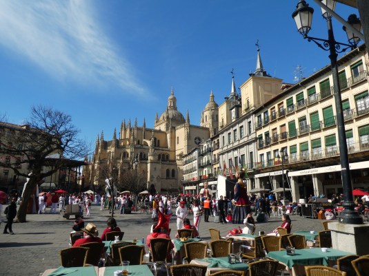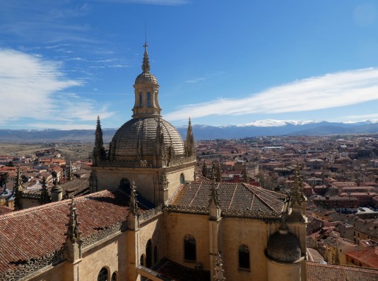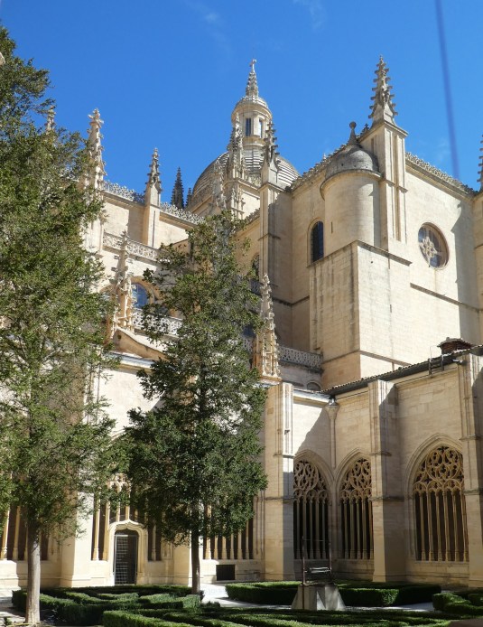 Suitably chastened we drove on into Segovia its cathedral impressively appearing on a hill before us. Eventually we made it into the city only to make a mess of finding a place to park as the bikes made the van too long to fit into a standard car parking space. After driving through narrow streets we went around the city and parked by the Convent below the castle. From here we enter Segovia with its World Heritage sites.