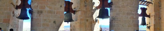 We climbed up a spiral staircase to the maintenance room before reaching the top of the bel tower where the 11 bells of various ages and sizes hung in an open chamber.