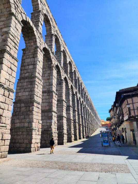We wandered on amazed at the size and condition of the 1st Century Roman aqueduct partly destroyed by the moors in the 10th century and rebuilt in the 15th century superimposing the Madonna statue over part of the Roman inscription. It dominated a large part of the city below the cathedral centre and was a focus of several broad streets.