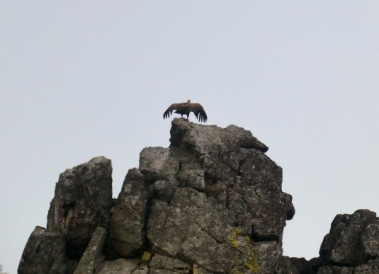 At first, we thought they were Black Vultures, but eventually decided theywere Griffin Vultures flying around us. It was very cold but fascinating, so we stayed and brewed up and had a bite to eat before moving on west and then south to Caceres.