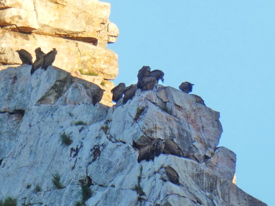 We stopped and immediately saw some vultures, and then the more we looked, the more we saw, sitting on the rocks catching the first warmth of the sun.
