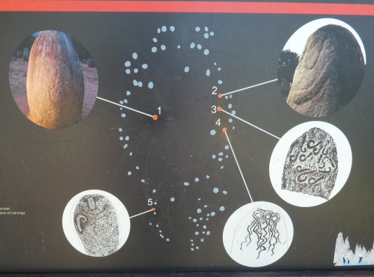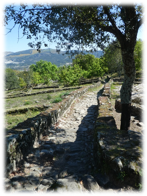 It was fascinating a whole ‘Castro’, iron age urban fortified settlement with roads, round houses, rectangular stores/animal shelters, culverts, surrounding walls and an unusual bath system was built from the 2nd century BC and occupied by Romans in the 1st century AD. Engravings had been found and lost at this site which linked it culturally with the settlements in the Cao valley.