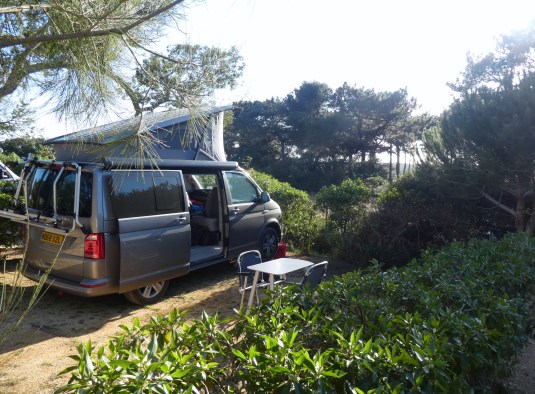 There was a barrier car park where we had planned to stay opposite the Camping Car site, but there was a two metre barrier we didn’t’ want to test for height, so we paid €15 and went in the camping car park.