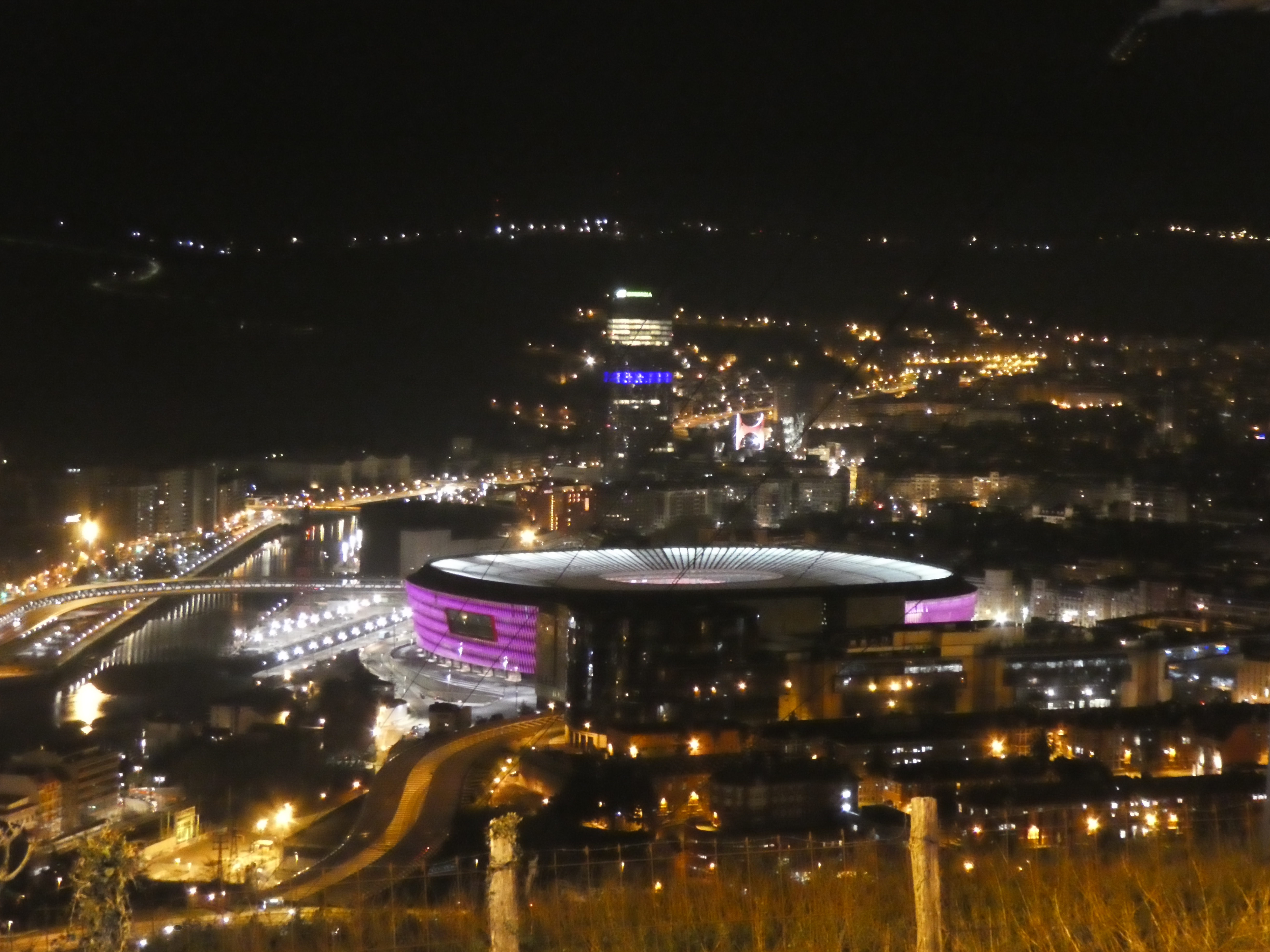 By this time the light was fading and the black silhouettes of the Les Landes pine trees were stunning against the sunset. Crossing into Spain as it got dark, we found a petrol station just off the autoroute and refuelled. It was dark as we twisted and turned our way to Bilbao where we eventually located the camping car park right on top of the hill with magnificent views over the city.