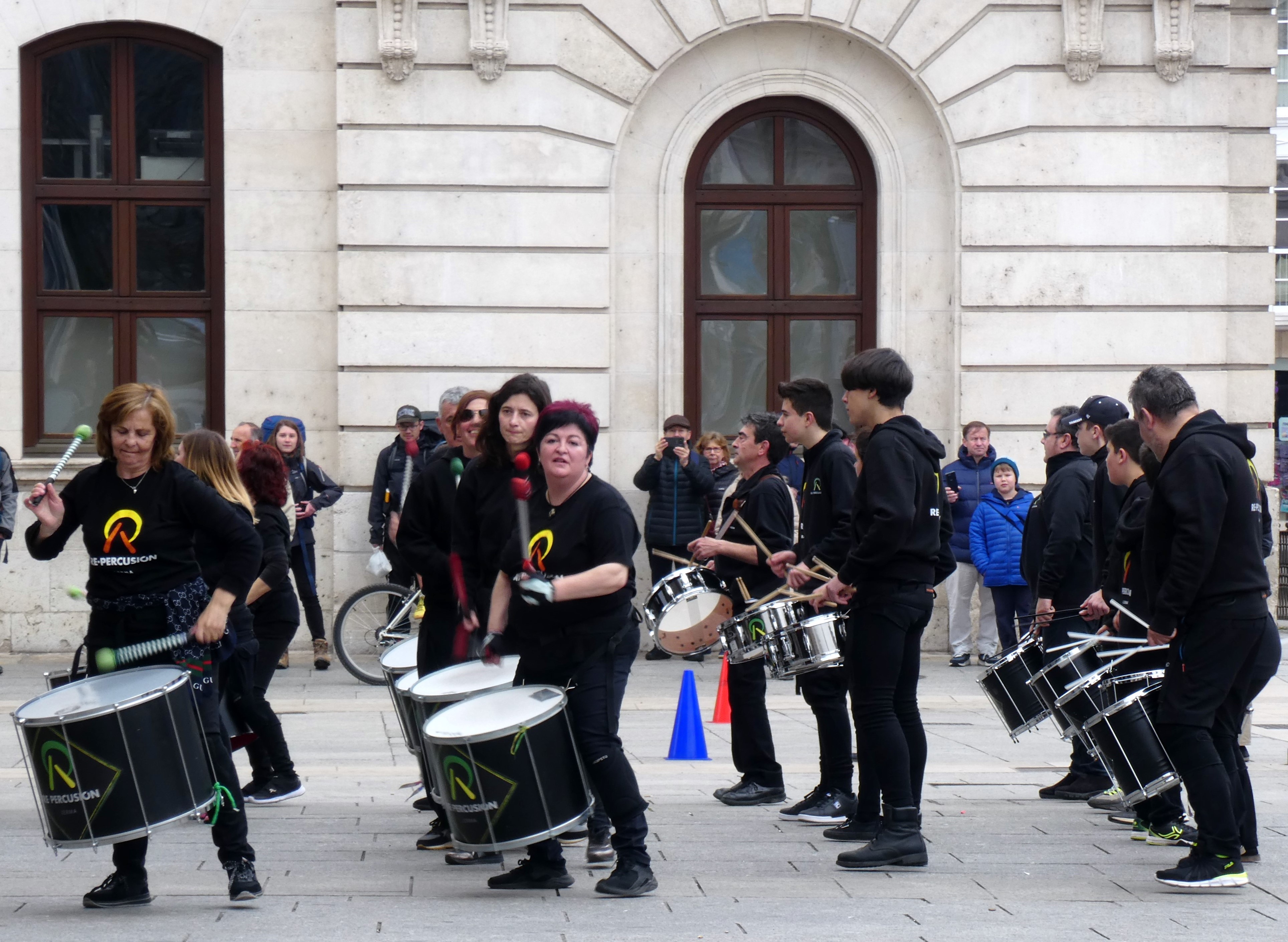 We wrapped up warm and cycled into the city leaving our bikes, as yesterday, by one of the main gateways. We passed a very enthusiastic drumming group accompanying runners in a half marathon.