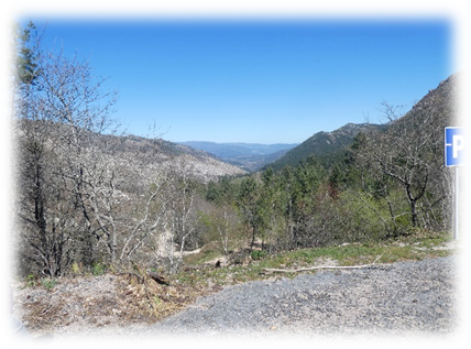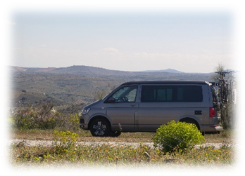 A visit to the tourist office directed us to a local store where we made a few purchases of food for the next few days. Having confirmed that the autocar camping park was not suitable for us, we drove off in the heat of the day towards the mountains.