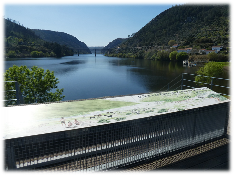 As we approached the town of Vila Velha de Rodao the sight of two power stations belching out smoke as we approached wasn’t promising. Even after we passed through the town to the river there was an odour in the air but once down by the river it was delightful with boats moored, picnic benches and even a vulture flying overhead!