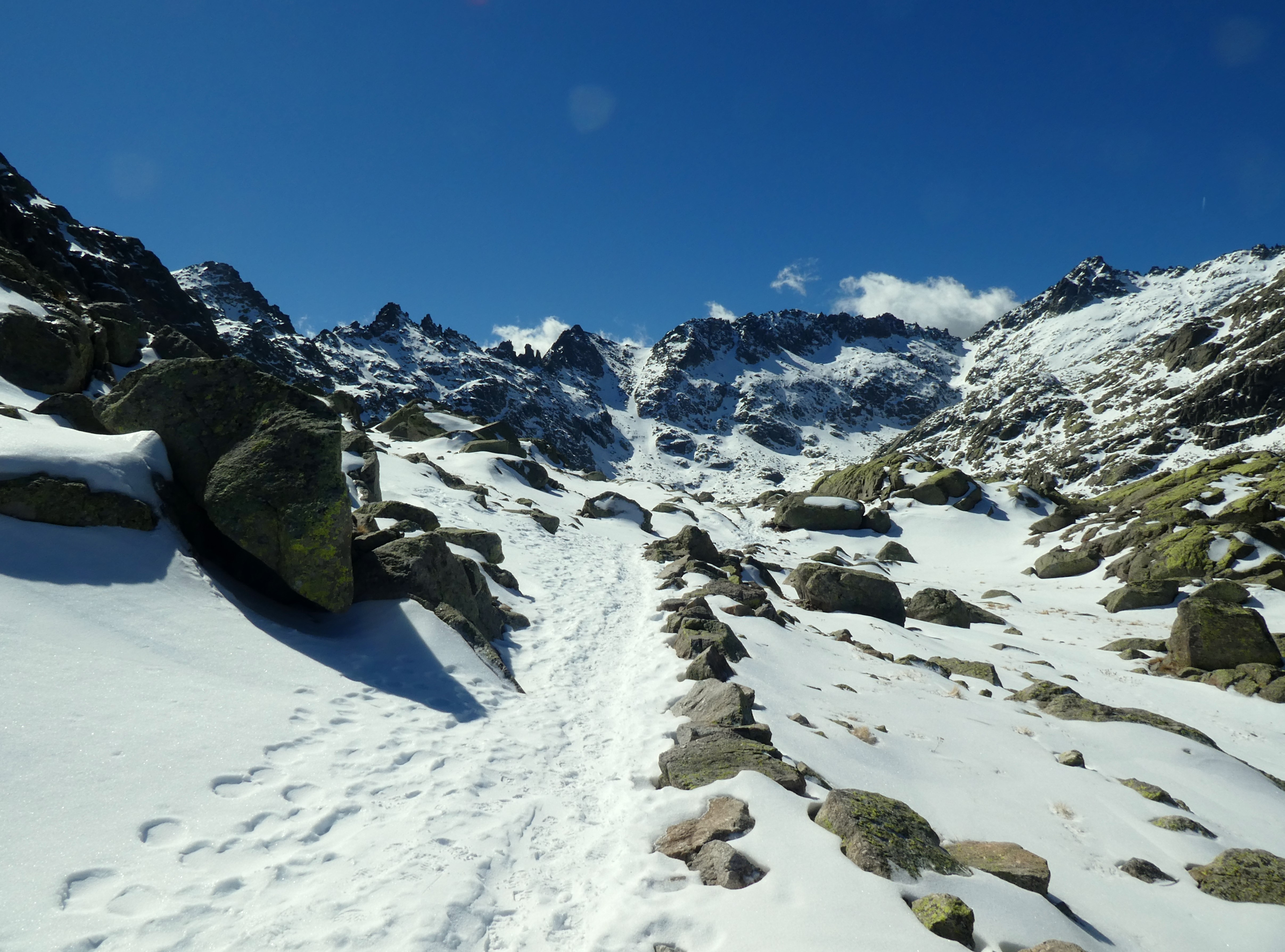 We climbed the mountain on a stone track which crossed a rocky plateau, before descending to the lake beneath Pico Almanzor, the highest peak in the park.
