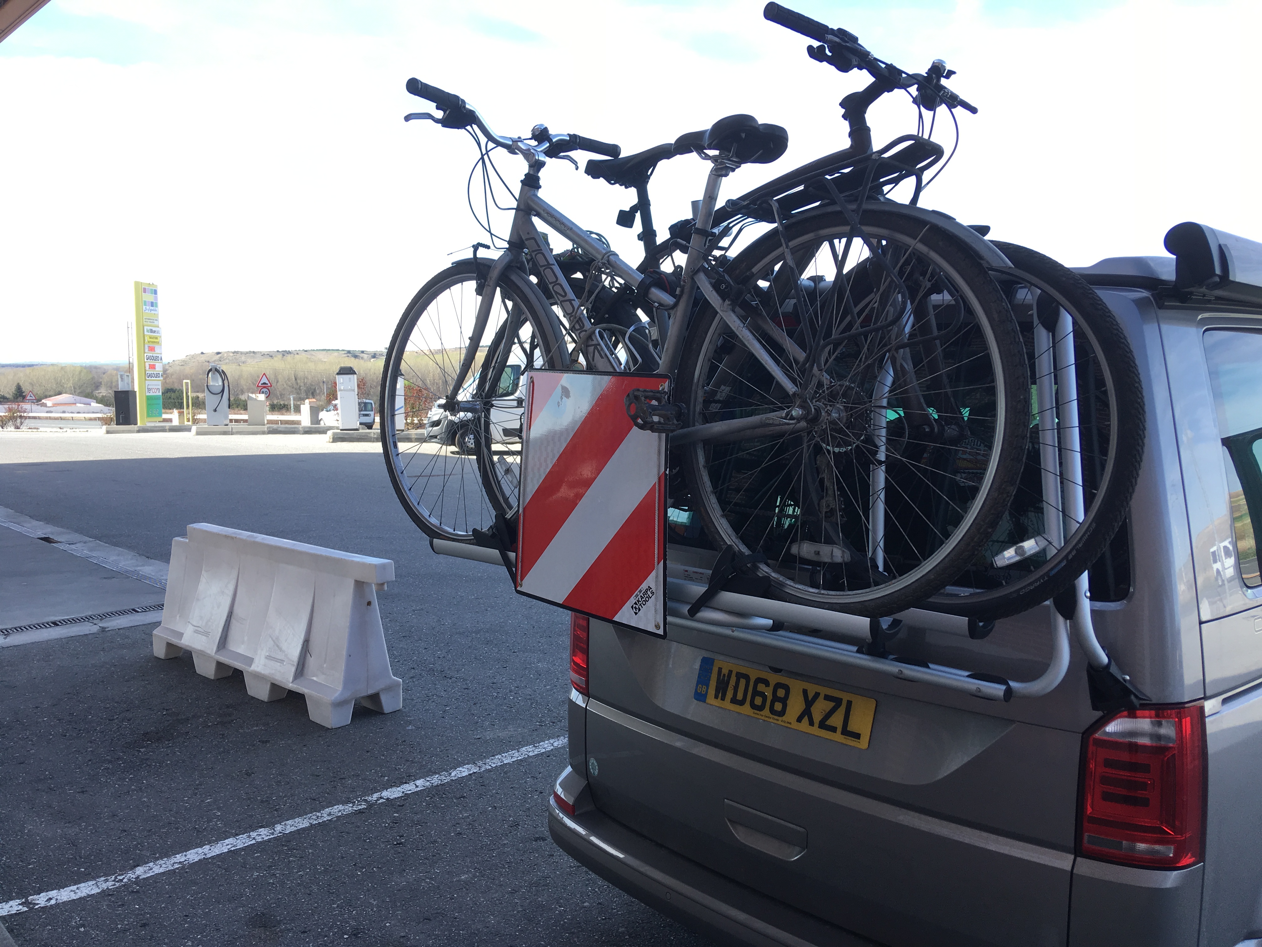 We were also advised that we needed to have a reflective metal plate on the back of the bike carrier as it stuck out beyond the end of the vehicle.