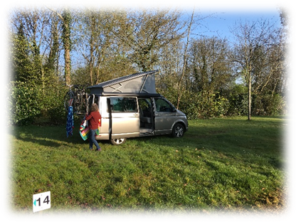 There was sun on our patch which we made the most of for breakfast. It was a nice large plot and quiet, but the area was not enticing.