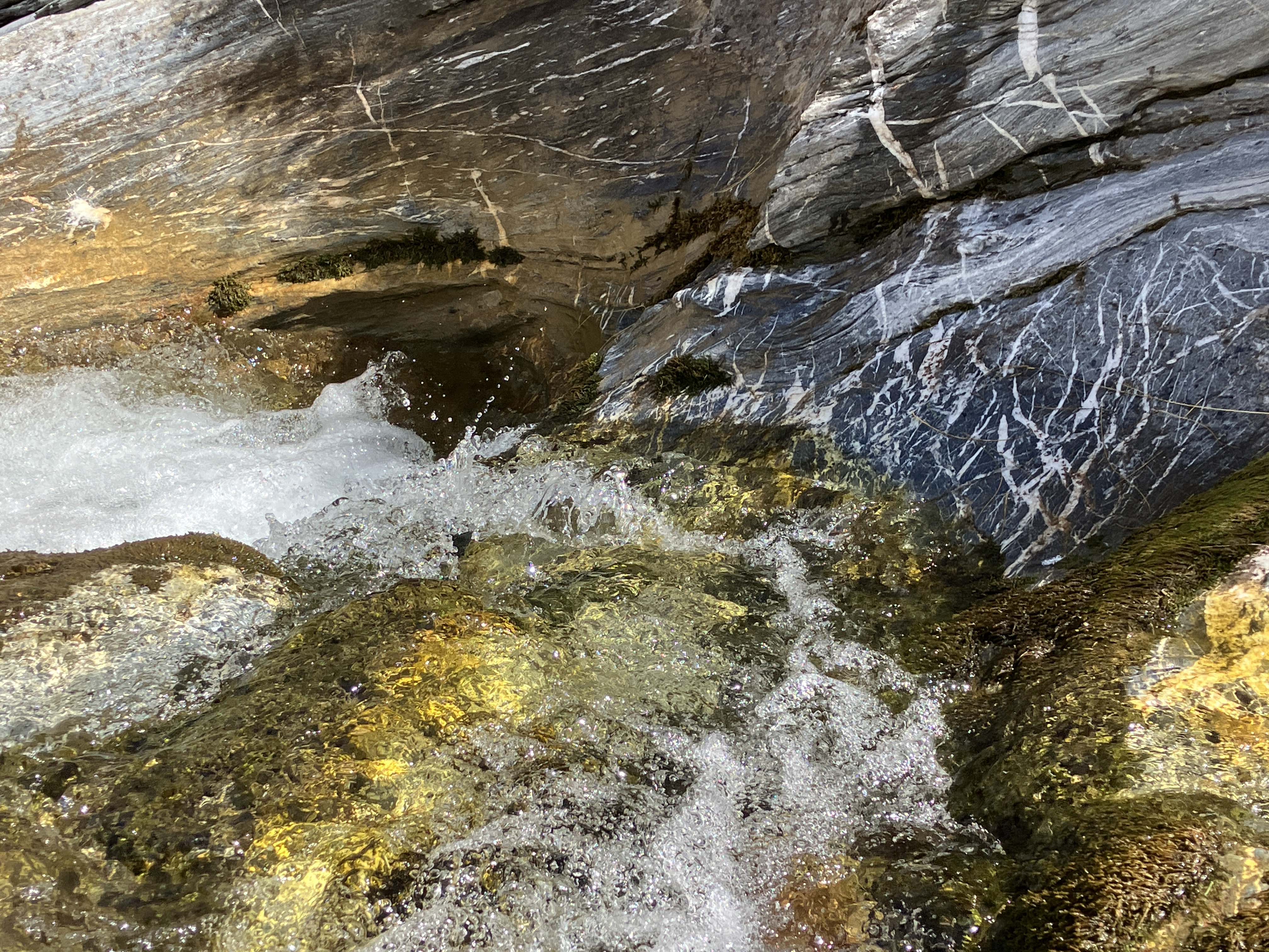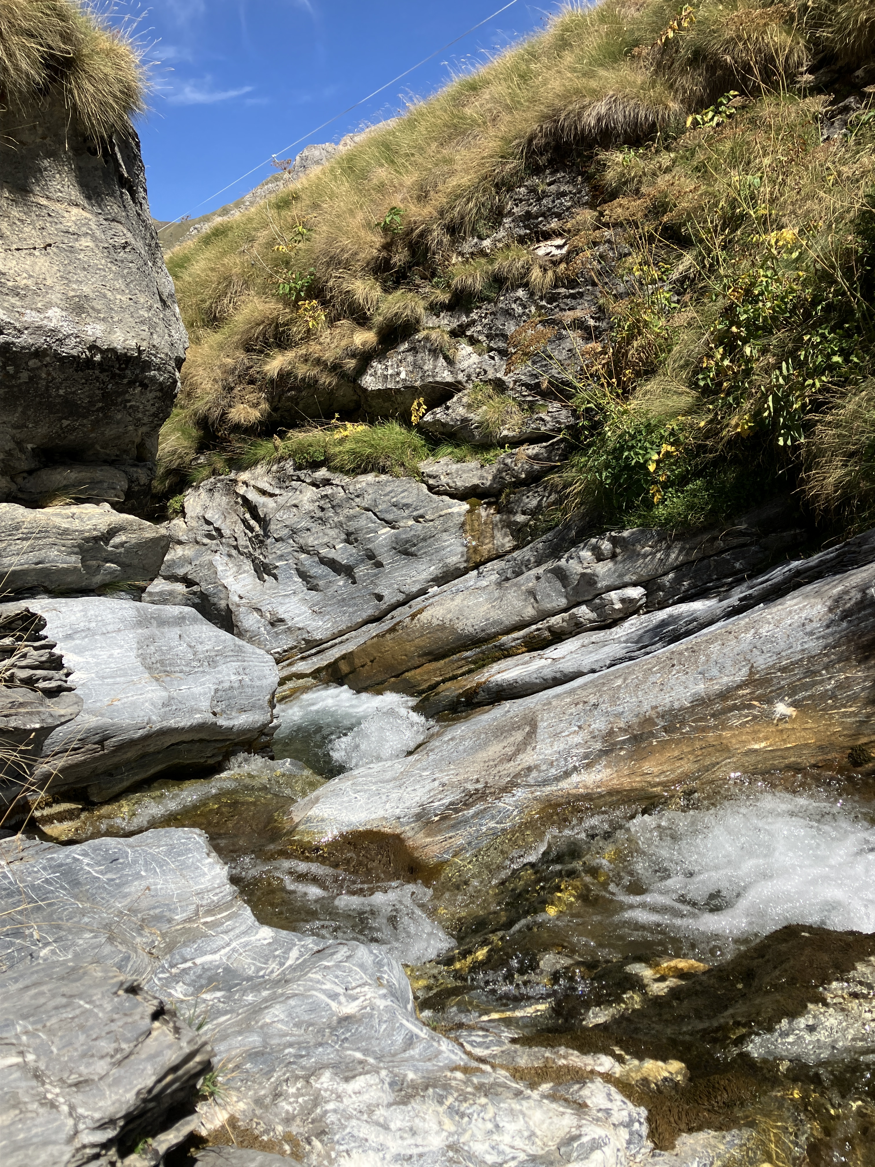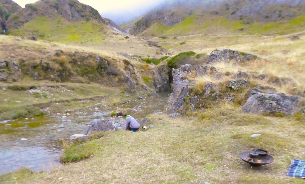We were washing up before the thirty-one brown cows joined us and the farmer arrived with his dogs to shoo them away, back up into the mountains again.