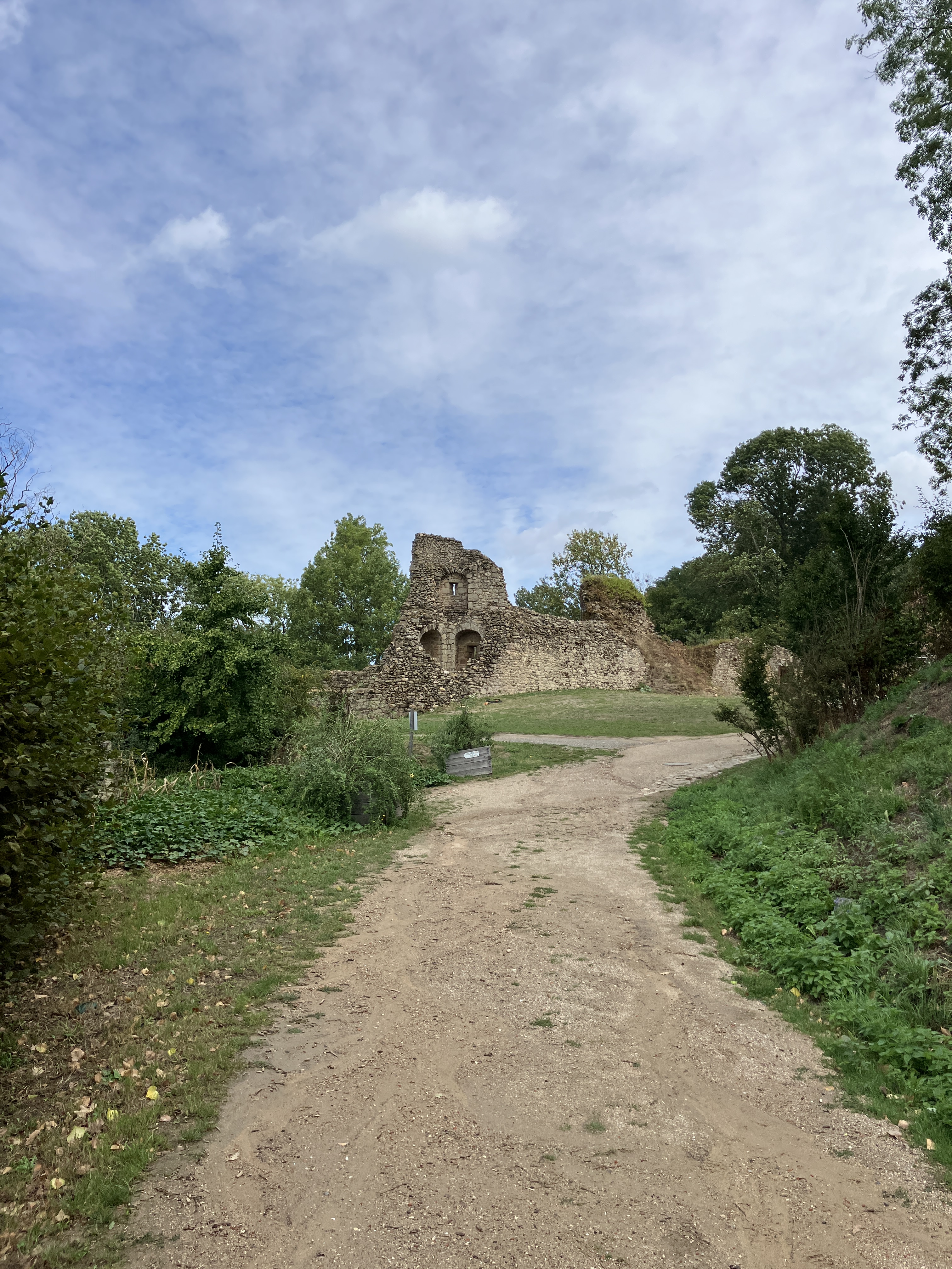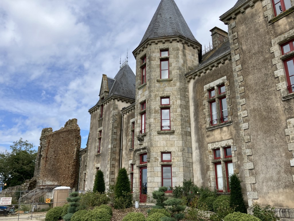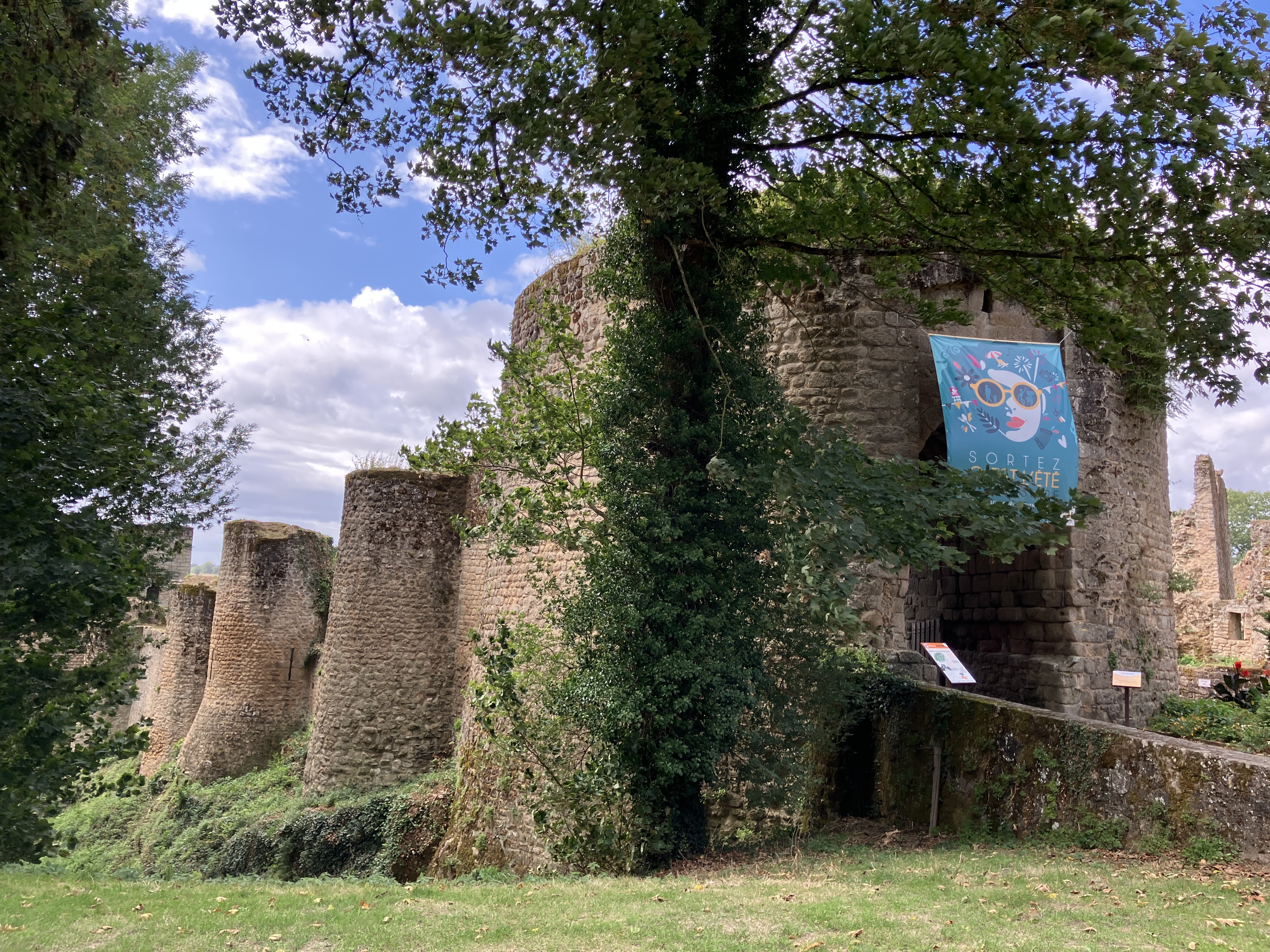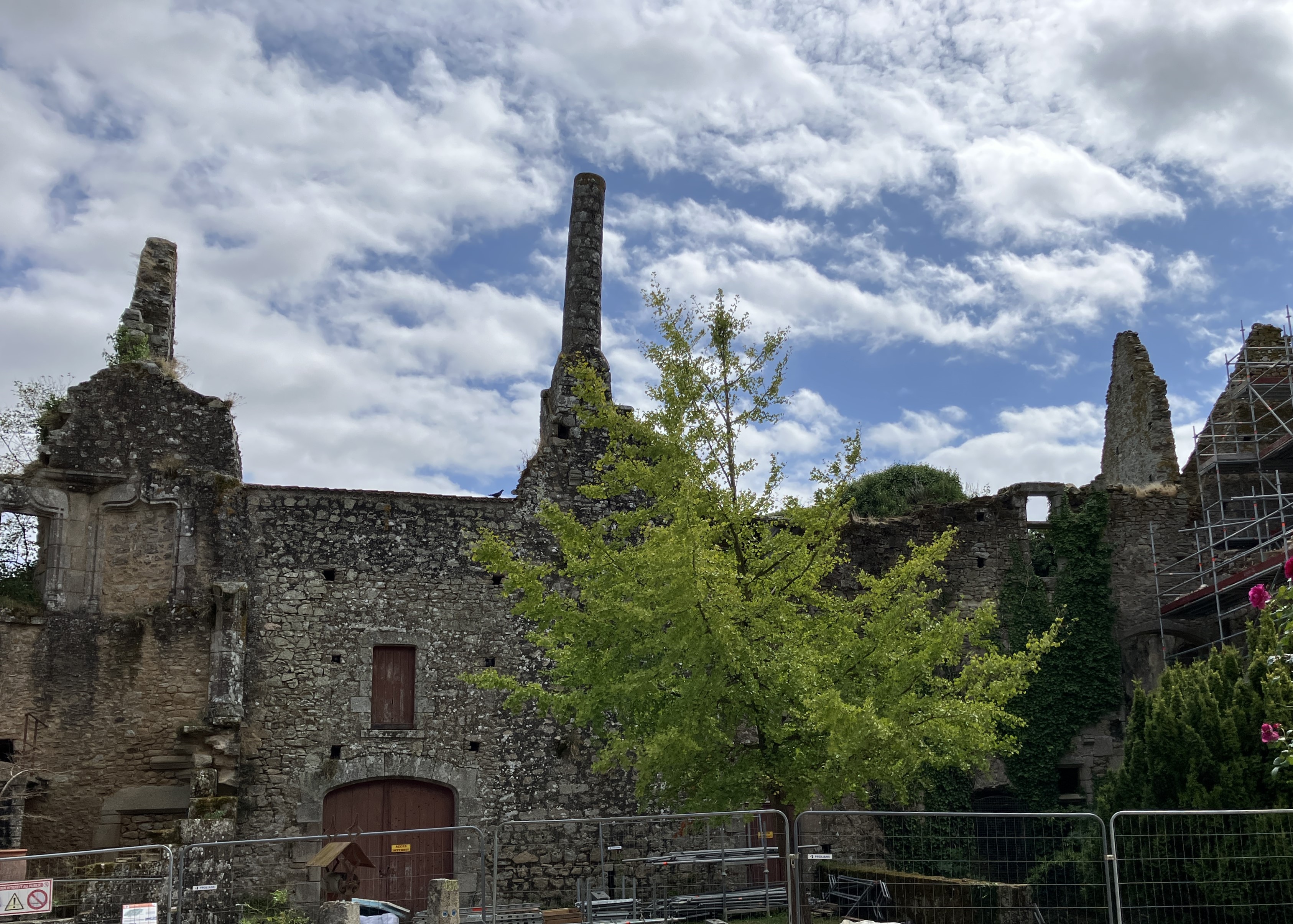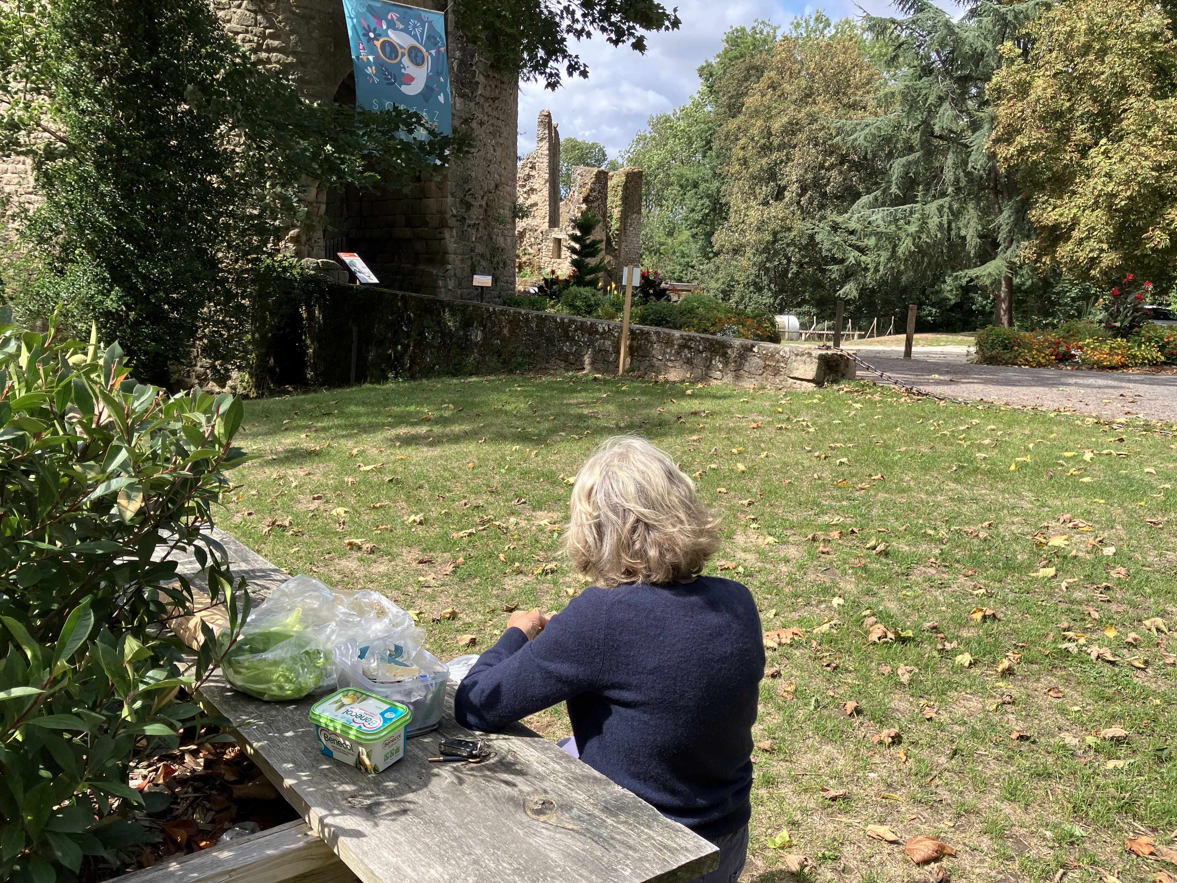 We stopped in Bressuire and queued with teenagers for some bread (they were buying their lunch). We went to the park for lunch, where the ruins of a medieval castle, which has a modern chateau built in its ruins, were being renovated.