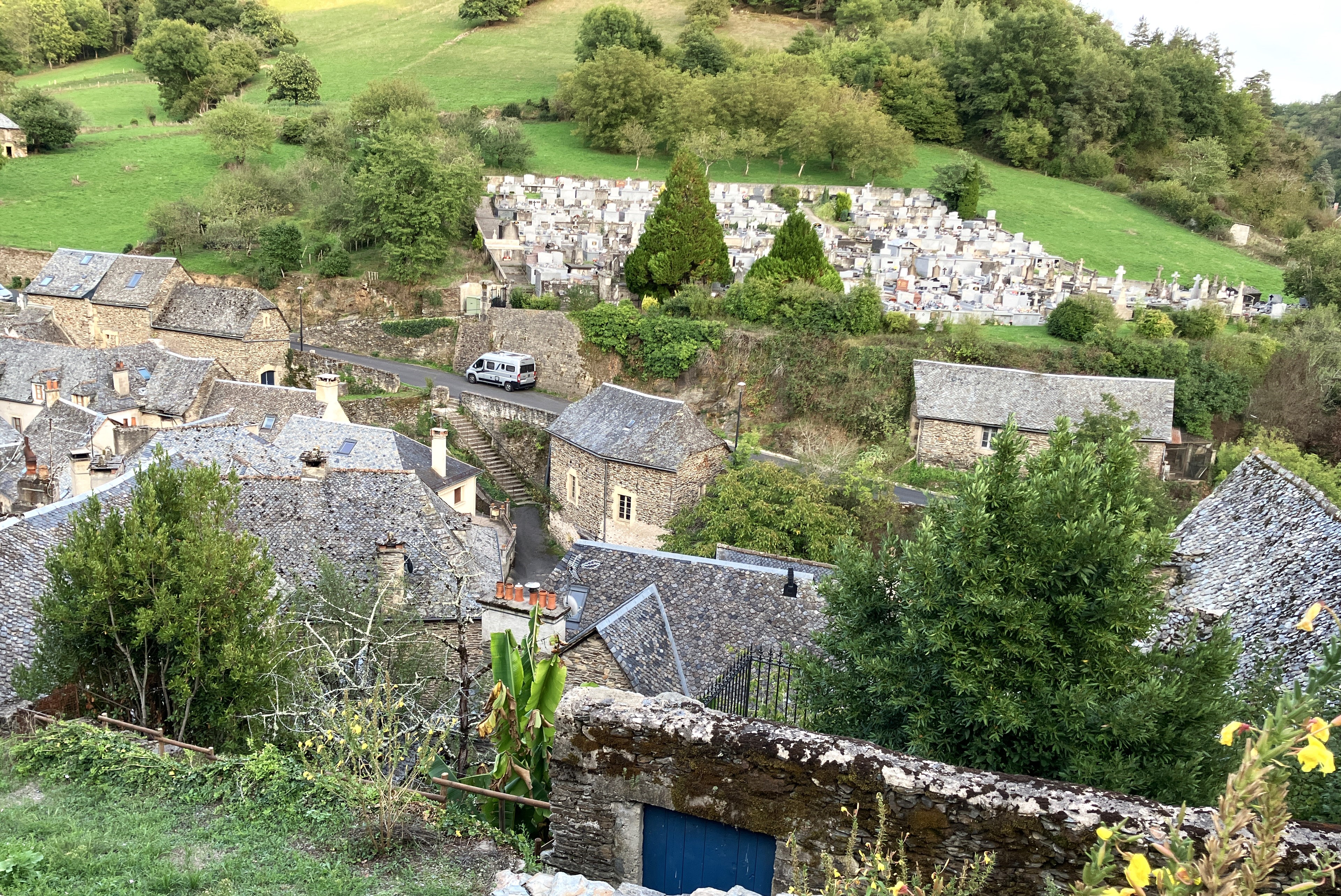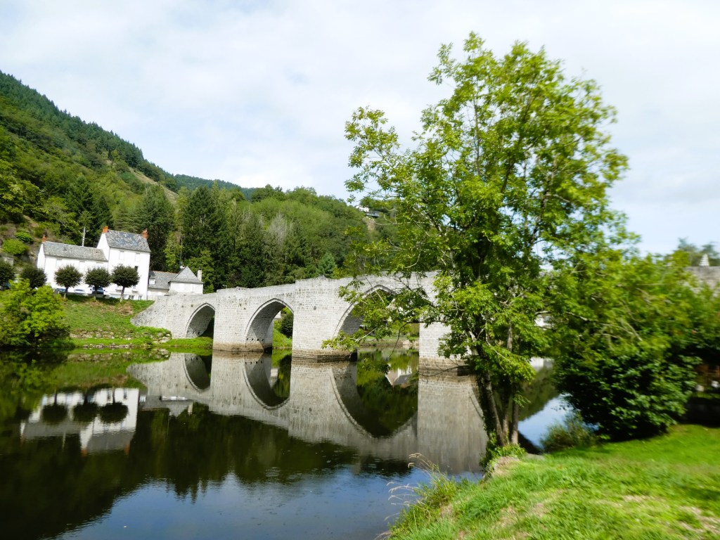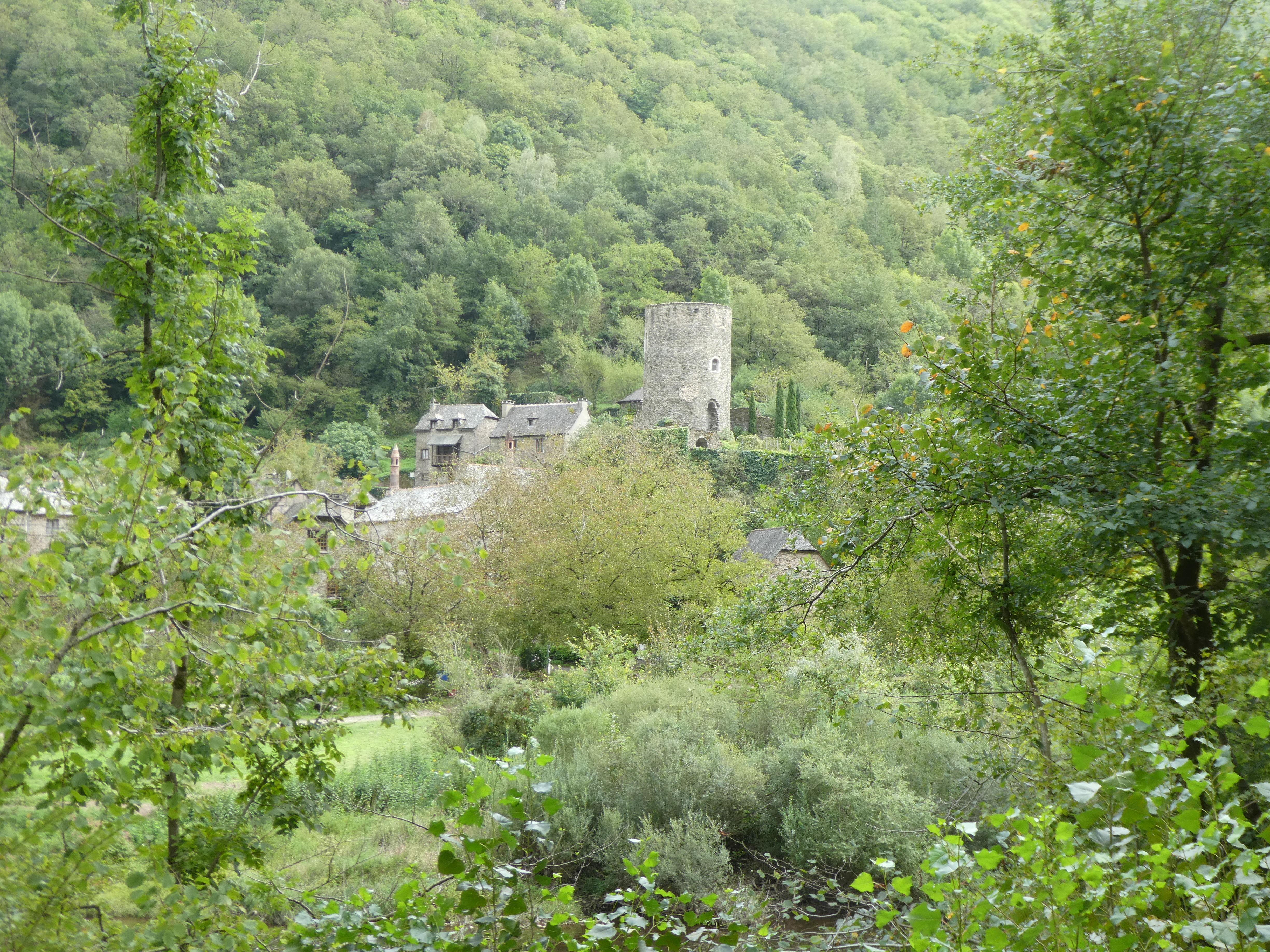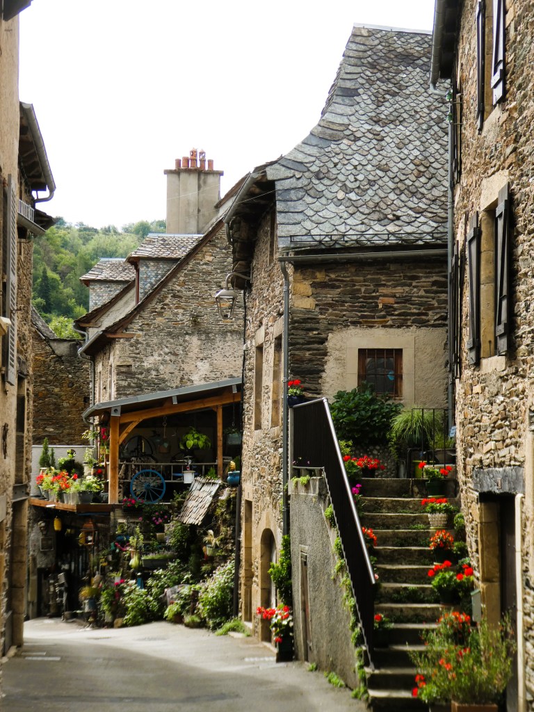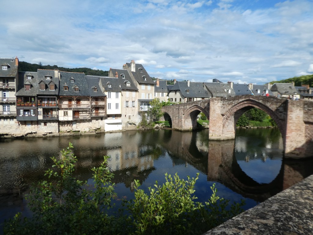 Our route ran parallel to the St Jacques route and we passed lots of pilgrims heading west enroute. At Goulinhac we had wide open views across the surrounding countryside. The narrow lanes we followed fell steeply down into Entraygues-sur-Truyere.