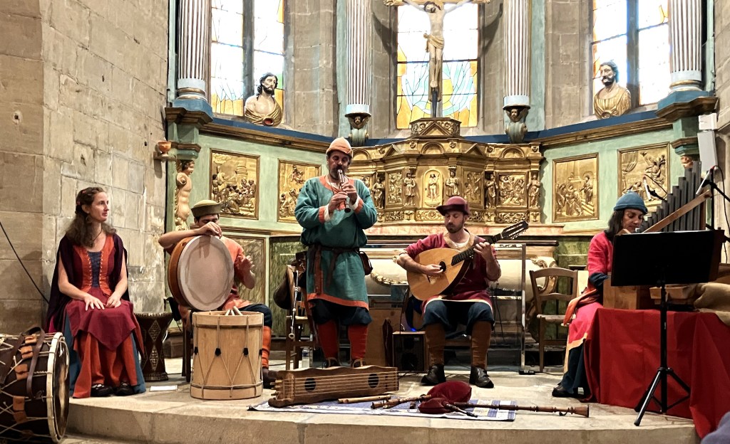 After lunch we cycled back and watched/ listened to some medieval street music with lots of pipes and drums before going to a concert in the Church by a group called Pescaluna.