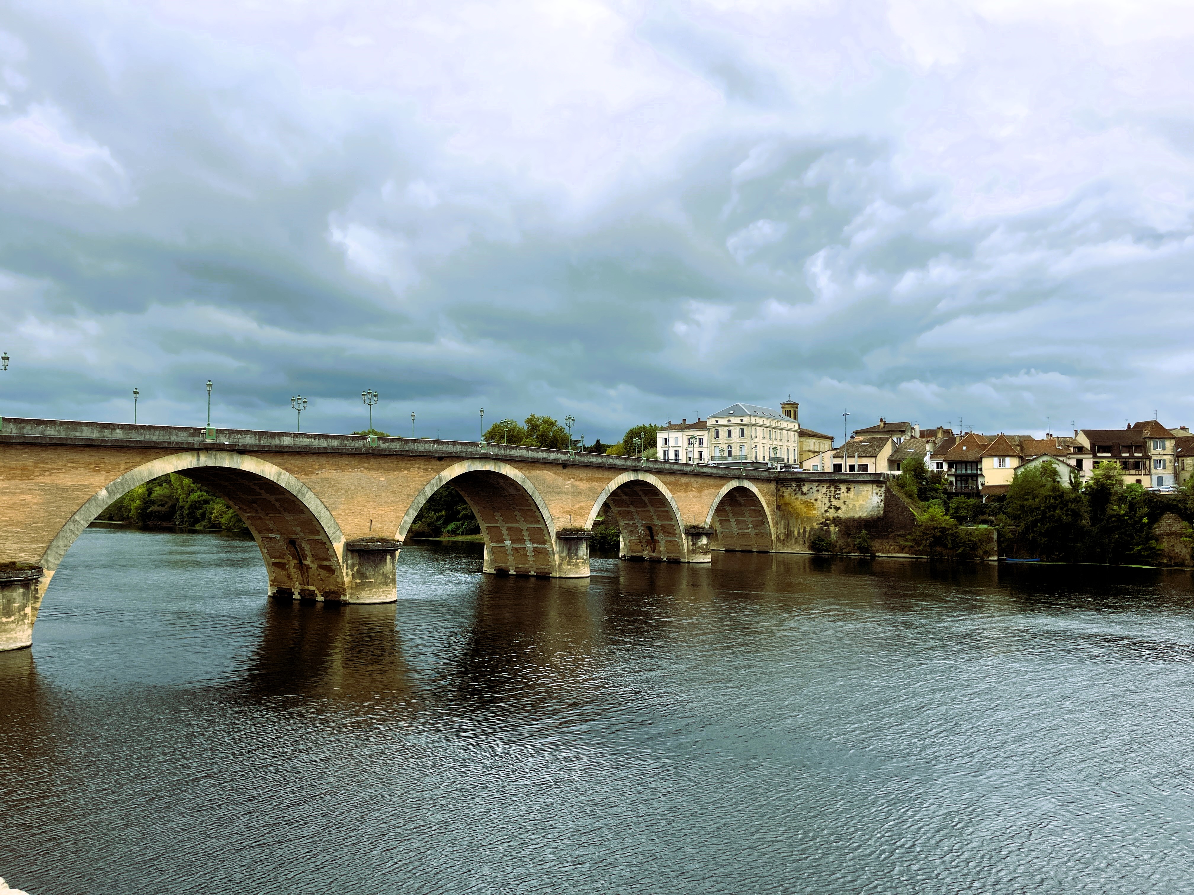 With rain forecast, we set out cycling well equipped. First into Lalinde and then along small roads through farmland and small villages to south of Bergerac. Here we joined a new cycle path which took us on a circuitous route all the way around the suburbs, a bit of a joke really!