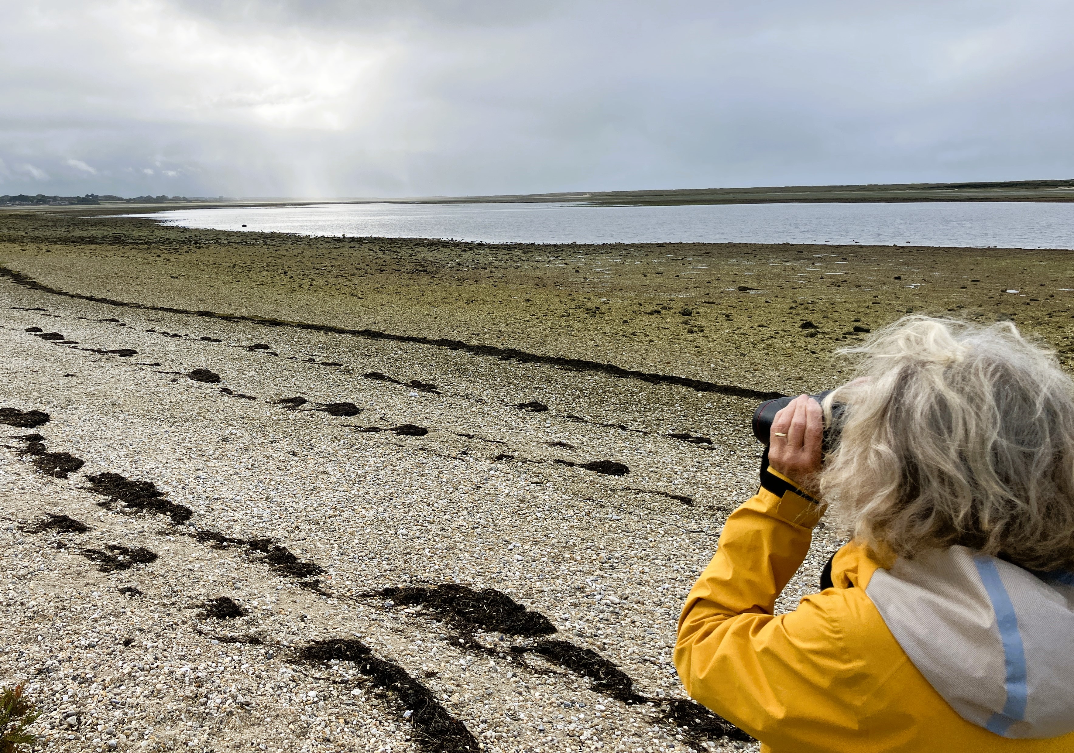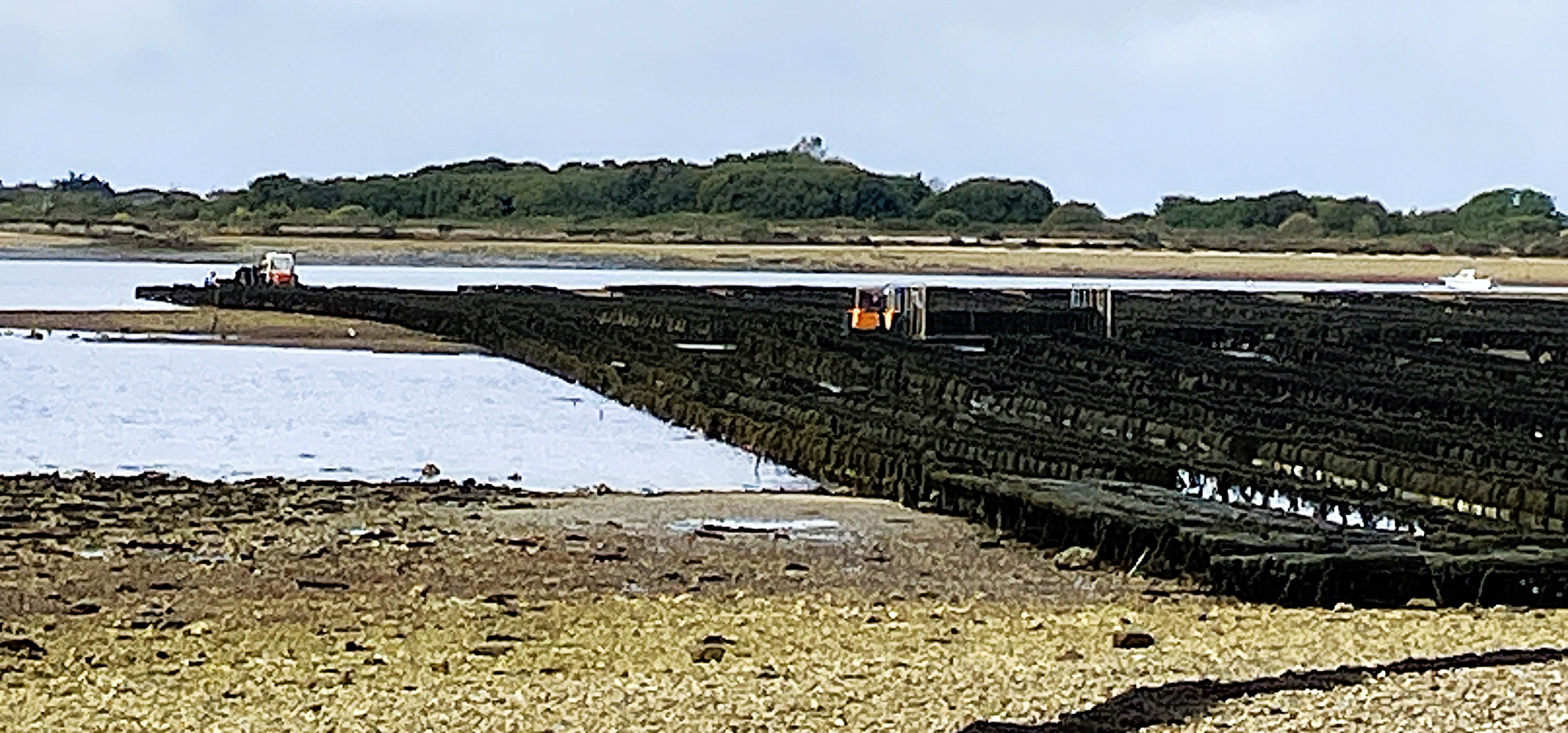 We ate the croissants with coffee back at the van before walking out with the binoculars to the end of the spit where we watched tractors collecting oysters from the beds by the factory. A fascinating area well worth staying at again.