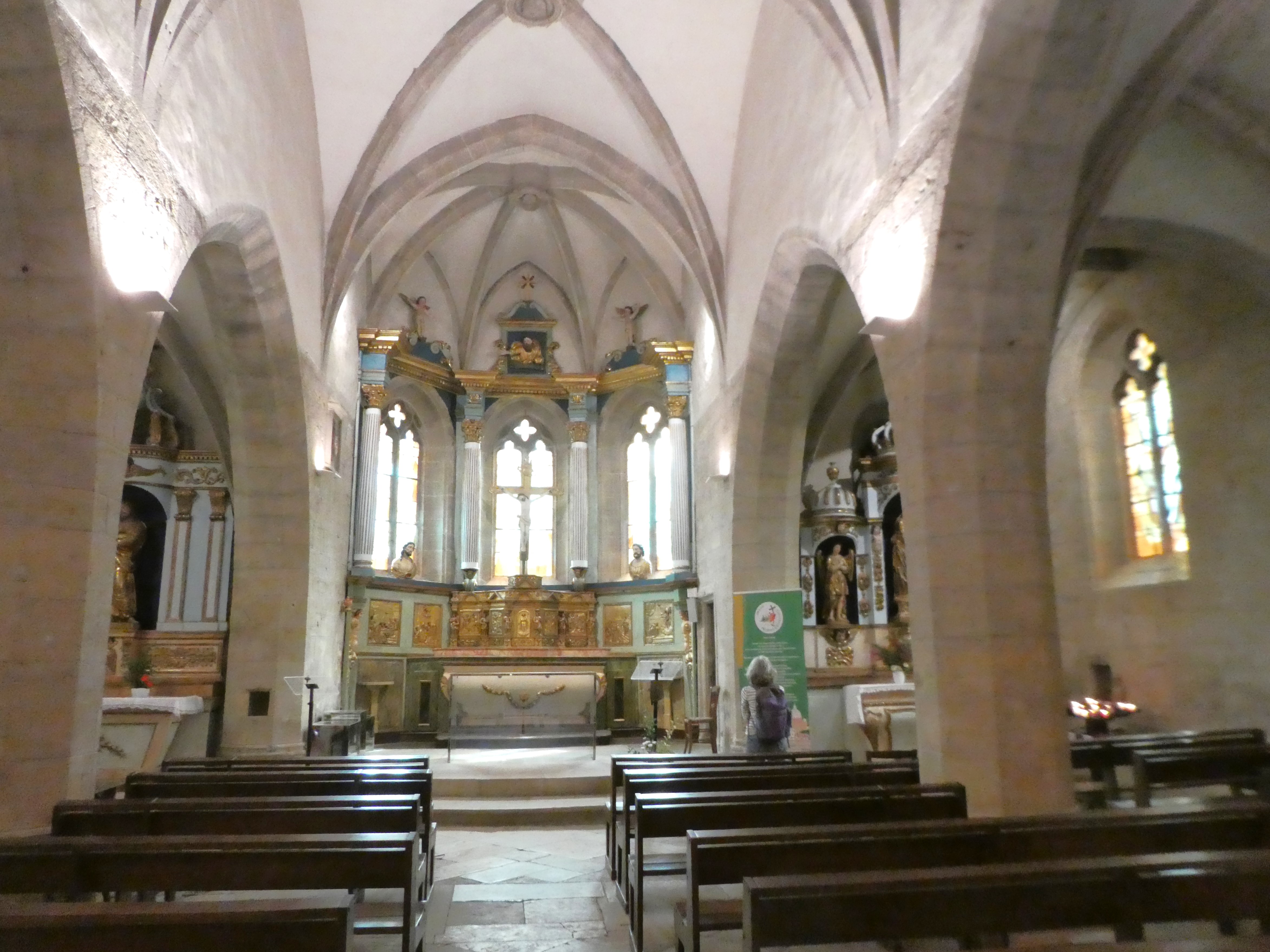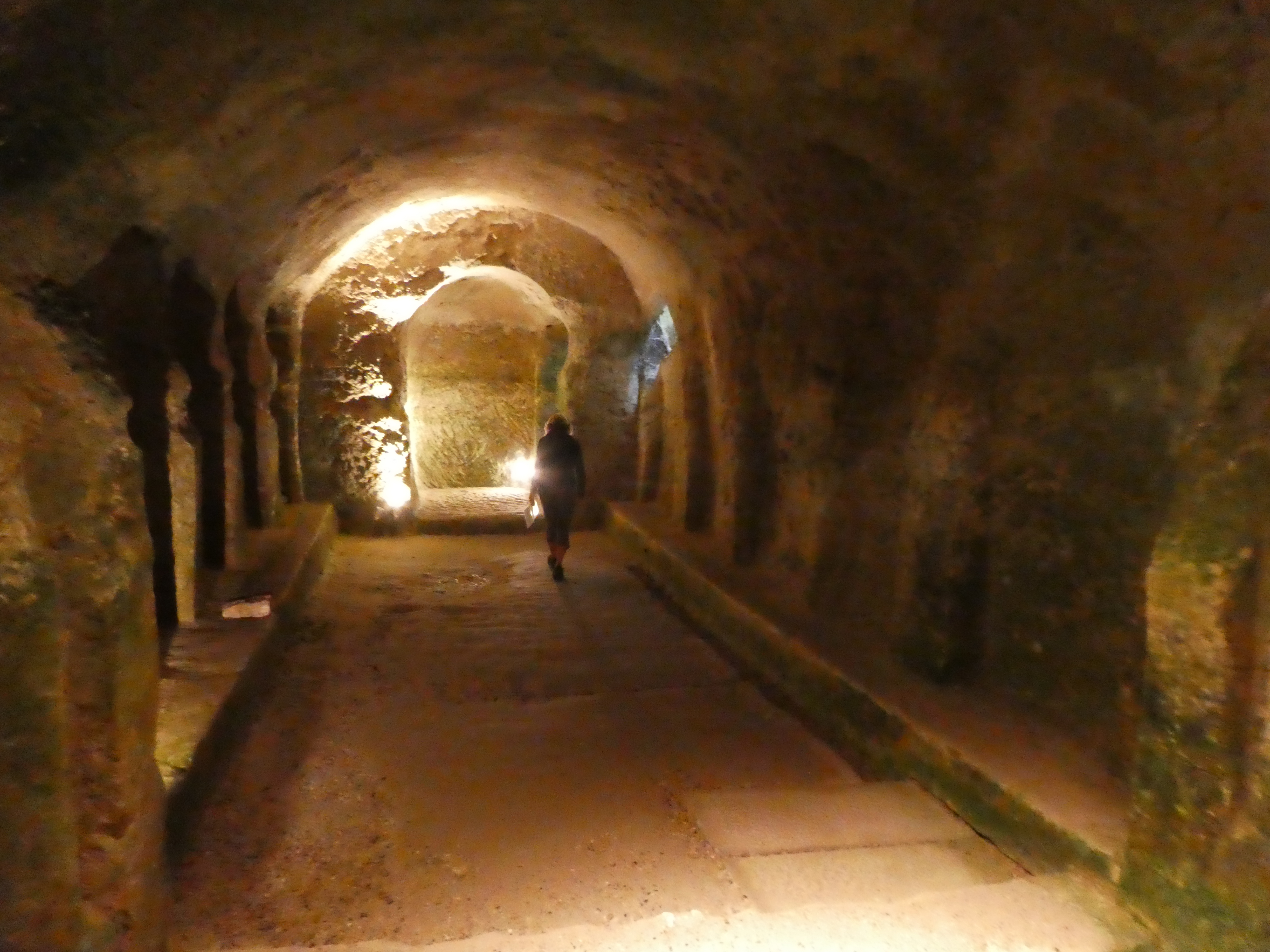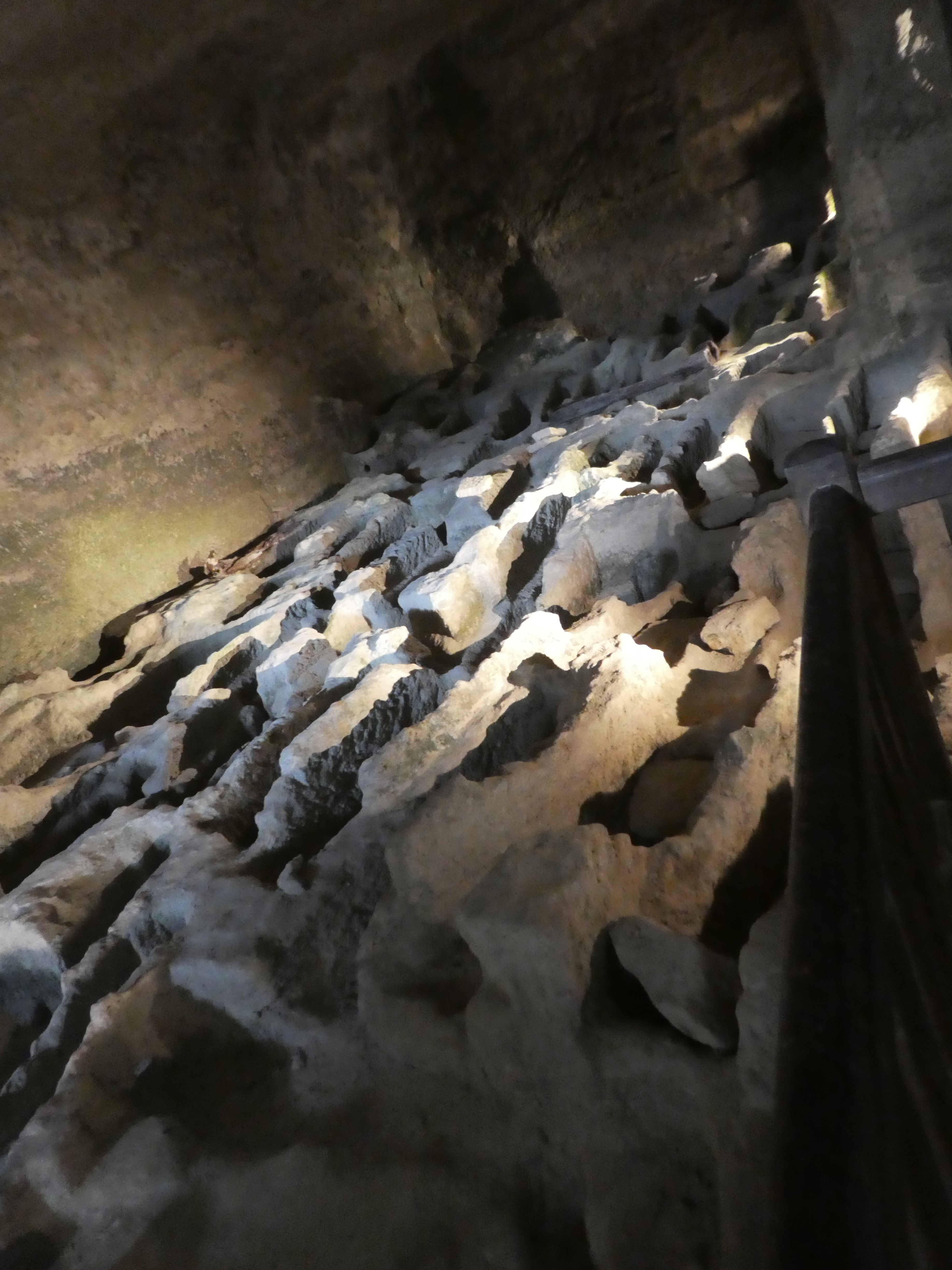 Originally it was carved out of the limestone cliff below the medieval castle in the 12th Century. Entering it was spectacular. After passing through a stone entrance, which was a separate chapel with a crypt underneath, we entered an enormously high central chamber which had a gallery on three sides.