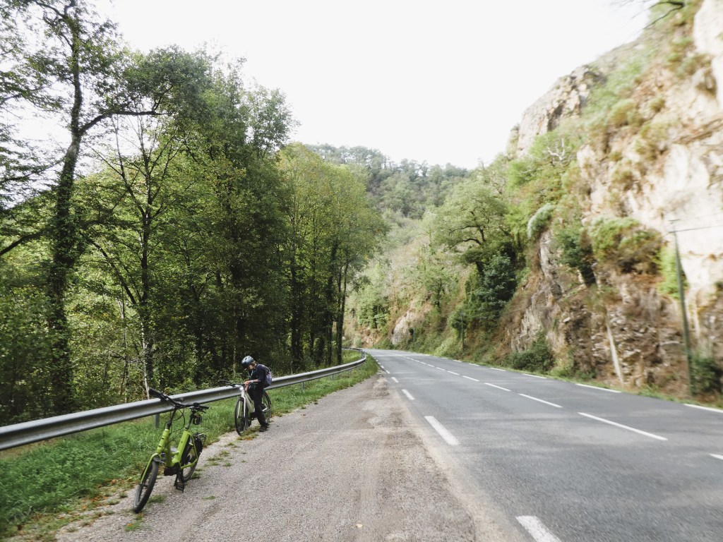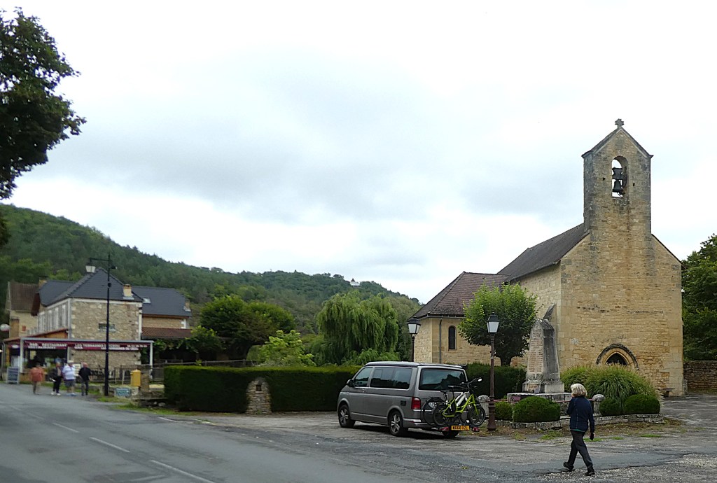 We were so pleased to have electric bikes as we were having to ride up and down hills all the way back. We stopped briefly at Tremolat where we bought something for tea and looked at a campsite that we had considered and were unimpressed.