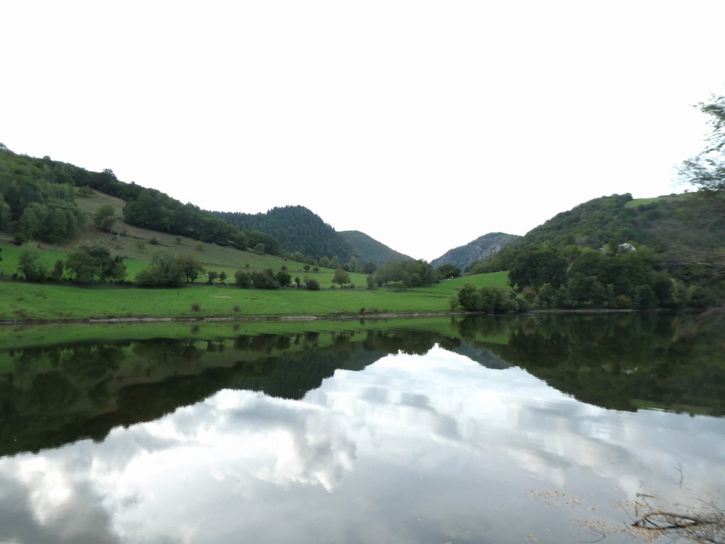 The main road took us gently uphill through the gorges of the Lot valley, past a lake formed by a barrage, to Estaing, where we had a much-needed drink and some popcorn! Refreshed we returned to the van for a simple supper.